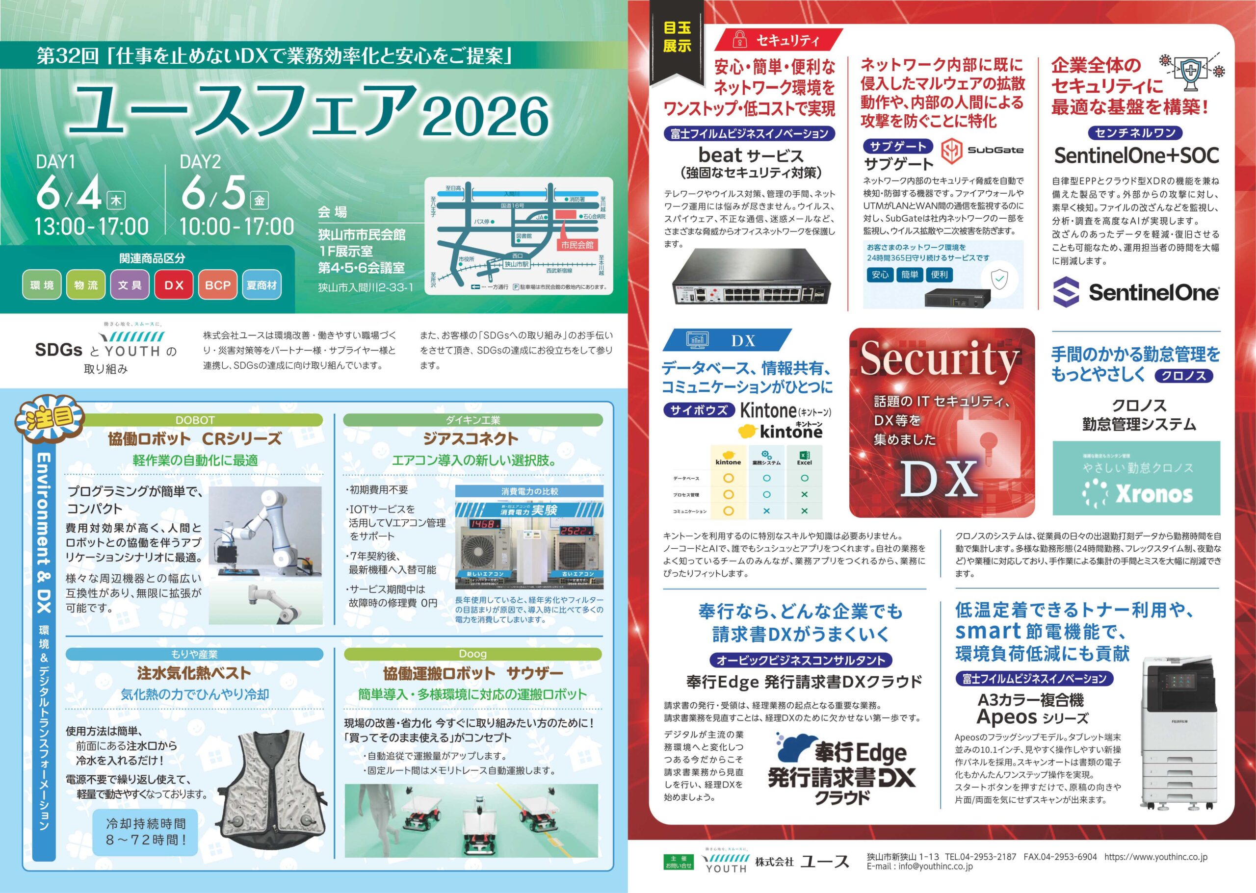 2026年6月4日(木)・5日(金)の2日間、狭山市市民会館にて「第32回 ユースフェア 2026」を開催いたします。