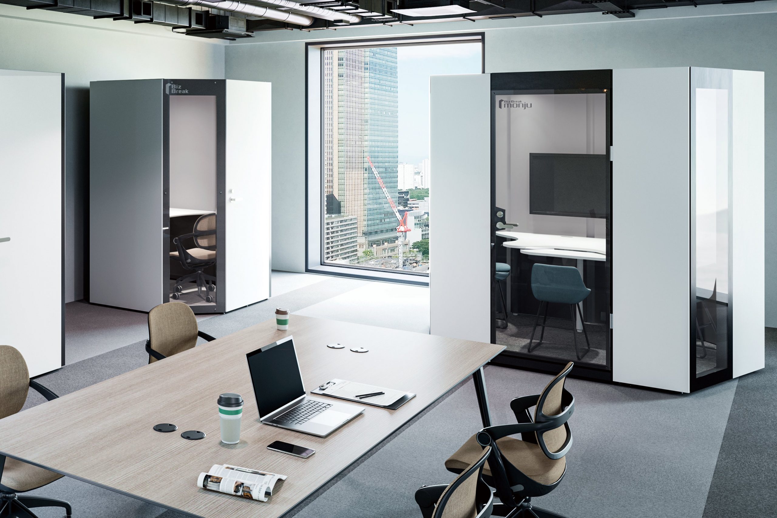 用途:働き方、働く場所が多様化する中、煩雑化するWebミーティングの音問題の解決はもちろん、より集中し、リラックスできる快適な空間を構築した個室ブース